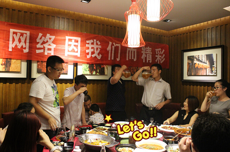 為增進員工之間的感情,同事們?nèi)鐟?zhàn)友一般的友誼,增加員工的團隊凝聚力、公司向心力和歸屬感, 周五晚上公司組織了聚餐。
