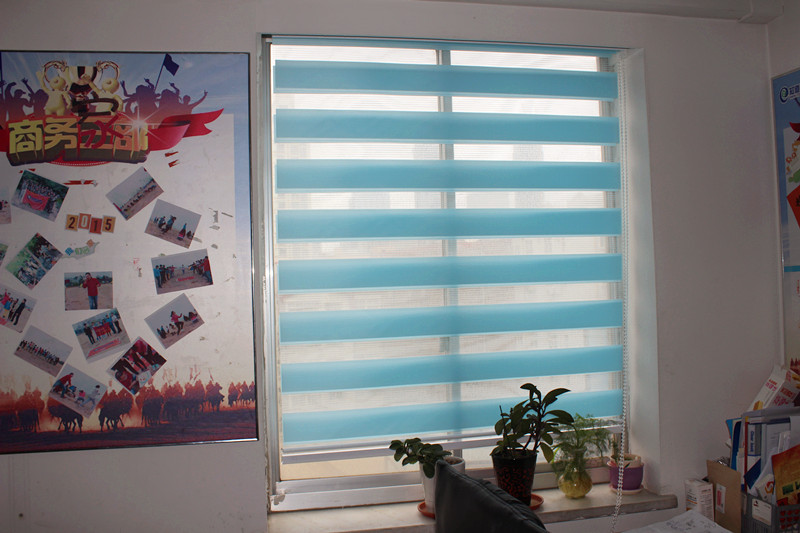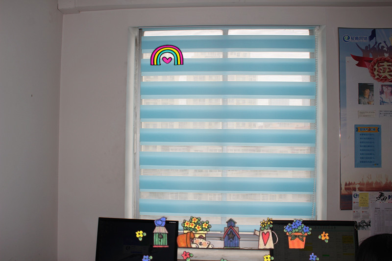 這是客服部新安裝的窗簾,清新雅致形容不為過。