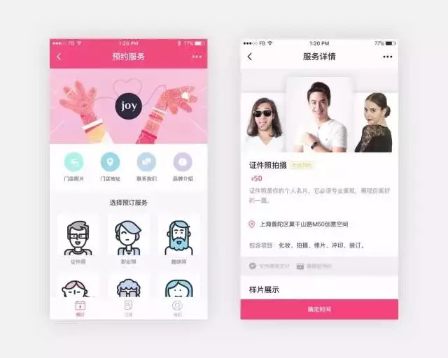 服務預定也是近期較火的小程序分類。展示自己的店鋪地址、服務內容,并且可以預定服務時間和項目。