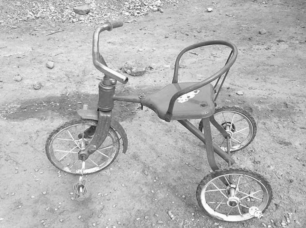 小時(shí)候騎的三輪車子跟現(xiàn)在小孩子騎的那可不是一個(gè)檔次??!那可是真正的鐵皮做的,前邊一個(gè)轱轆,后邊兩個(gè)轱轆!