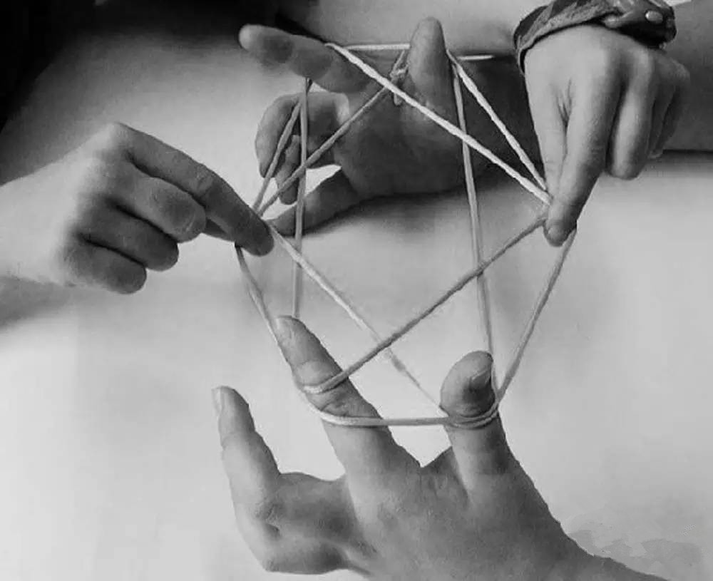 到現(xiàn)在,只要有心情,也可以用一根線打個(gè)結(jié)變身成一個(gè)好玩的工具。兩個(gè)小伙伴之間把繩子翻來(lái)翻去,變幻無(wú)窮,也樂趣無(wú)窮。