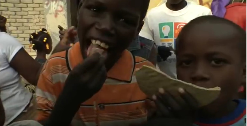 在海地,人們將濾去碎石和土塊的泥漿加入鹽攪拌,并用勺子把厚重的泥漿攤成餅狀,然后把它們放在太陽下曬干。在當?shù)氐氖袌錾狭X可以買5個泥餅。