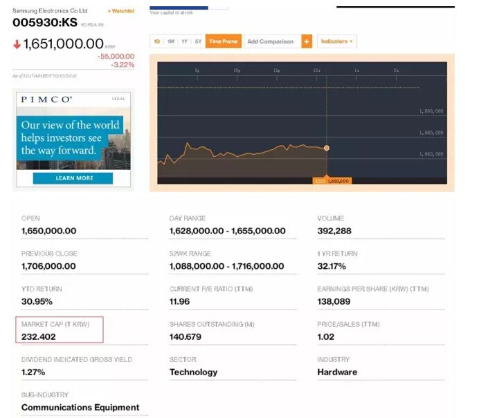 受運(yùn)營商停售和三星停止生產(chǎn)Note 7不利消息的雙重打擊,三星電子股價在今日遭受重挫。