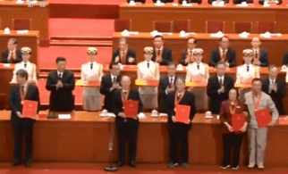 改革開放40周年大會上,黨和國家領(lǐng)導(dǎo)人集體轉(zhuǎn)身,向“改革先鋒”稱號獲得者和“中國改革友誼獎?wù)?rdquo;獲得者表示祝賀。