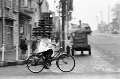 20世紀中葉日本騎著自行車的外送小哥