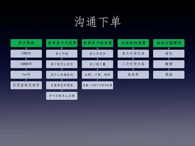 接下來開始溝通下單了,溝通好,確定下單,就要開始注意四個相關內容: