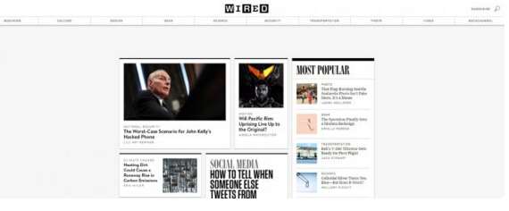 突出品牌的方式有很多,內(nèi)容是其中很重要的部分,同時(shí)視覺(jué)和體驗(yàn)也不容忽略。比如在技術(shù)類(lèi)數(shù)字雜志中極為出名的 Wired ,也就是《連線》雜志。獨(dú)樹(shù)一幟的 LOGO,黑白分明的配色融入整個(gè)數(shù)字雜志的網(wǎng)站設(shè)計(jì),和 LOGO 以及品牌本身遙相呼應(yīng)。